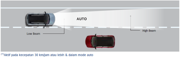 sekitar, lalu secara otomatis beralih antara lampu jauh atau lampu